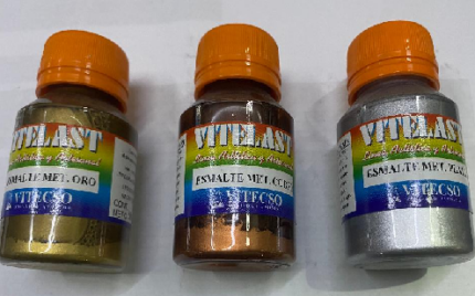 Esmalte metalizado oro – plata – cobre