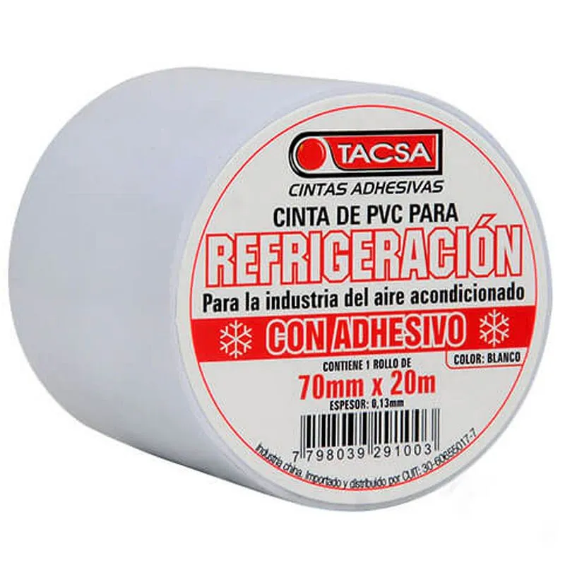 La cinta de pvc para refrigeración con adhesivo es utilizada para el revestimiento de conductos de la industria del aire acondicionado y refrigeración. Otorga excelentes propiedades de adhesión, elongación, flexibilidad, resistencia a la tracción y a la intemperie. Es de fácil aplicación y corte.