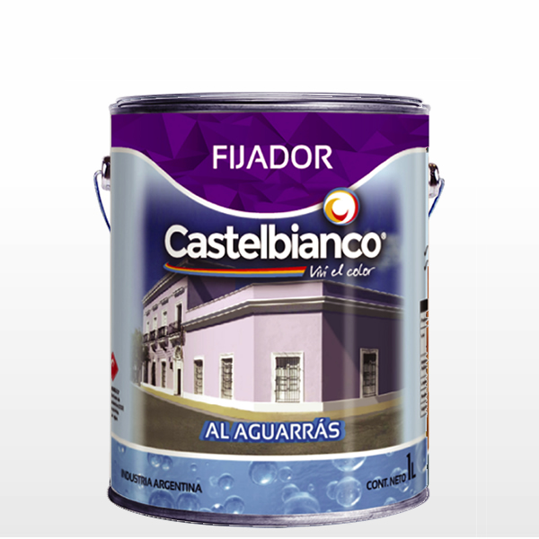 El fijador al aguarrás Castelbianco esta formulado a base de resinas sintéticas para sellar y fijar especialmente superficies envejecidas, flojas, muy porosas o entizadas y así uniformar la absorción del sustrato en una sola mano.