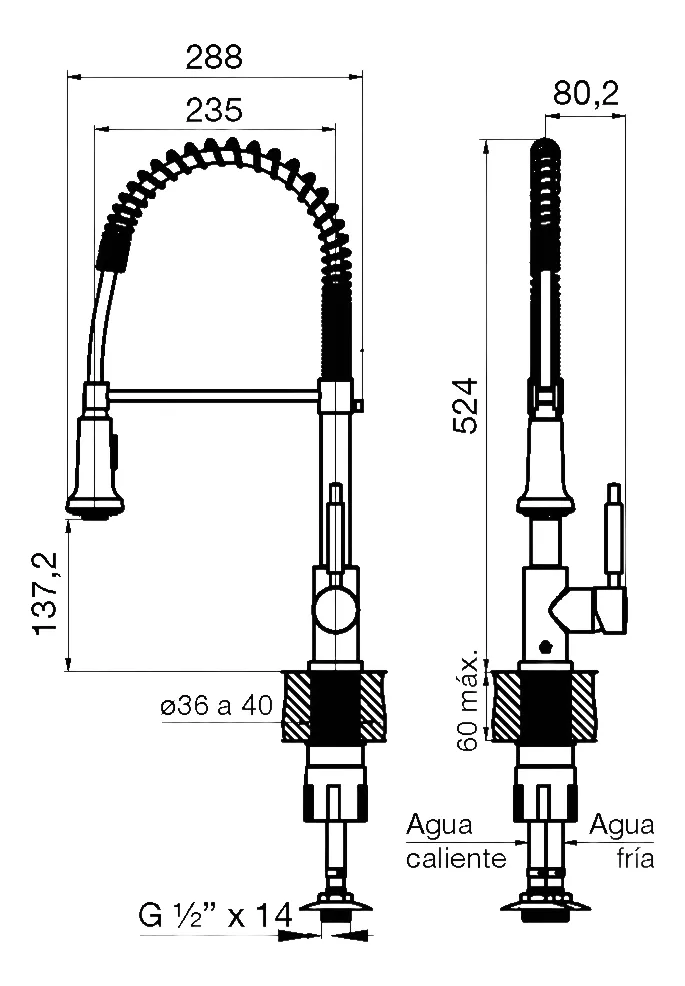 Apto: Presión mínima sugerida para uso con calefón: 1,2 BAR