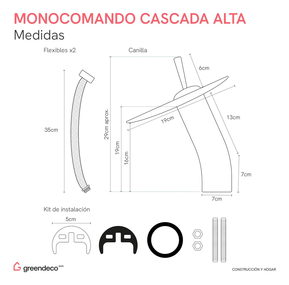 Grifería monocomando para Lavatorio alta