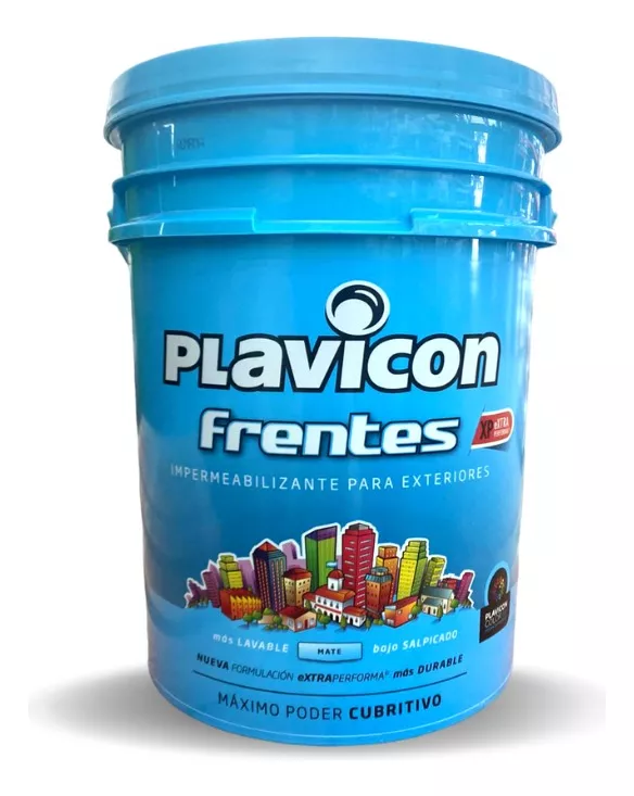 Impermeabilizante para frentes, muros y paredes exteriores de máximo poder cubritivo,resistente al lavado y a la abrasión como a la formación de hongos. Plavicon Frentes forma un escudo protector contra el agua y la humedad aún a temperaturas extremas.