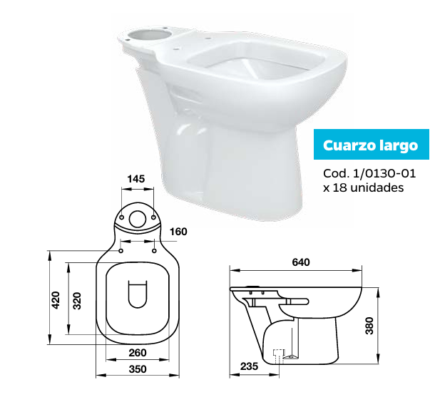 Inodoro largo de apoyo Derpla Cuarzo