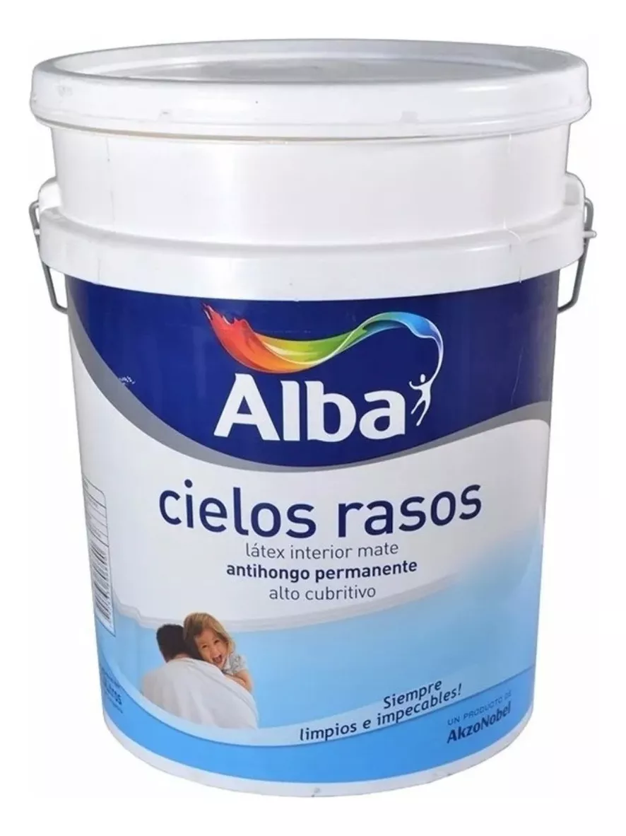 Látex para Cielos Rasos Interiores Mate. Fórmula que proporciona una película firme y de alta porosidad, ideal para el pintado de cielos rasos. Desarrollado para resistir el crecimiento de hongos a lo largo del tiempo. Alto poder cubritivo, previene la condensación de agua y la formación de manchas en la superficie. Color blanco, puede ser entonado con Tonalba hasta 7,5 cm3/litro.