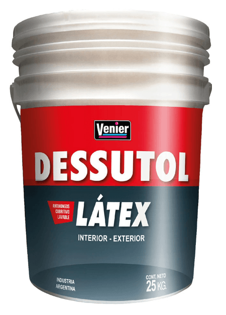 LATEX DESSUTOL INTERIOR/EXTERIOR Es una pintura al látex desarrollada para proteger y decorar superficies de mampostería, maderas, fibrocemento, yeso, etc. Elaborada con polímeros, se distingue por su alto poder cubritivo, su resistencia al frote húmedo, rápido secado y perfecta adherencia. La incorporación de biocidas de altísima calidad le otorga gran resistencia a los hongos. No amarillea. Se logran superficies mas tersas con un minino esfuerzo. Se puede ampliar la gama de colores mezclando los colores entre si o mezclándolos con látex blanco para lograr tonos pastel.