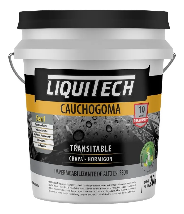 Impermeabilizar con LIQUITECH CAUCHOGOMA contribuye al cuidado del medioambiente dado que permite reciclar hasta 10 cubiertas cada 100m2.