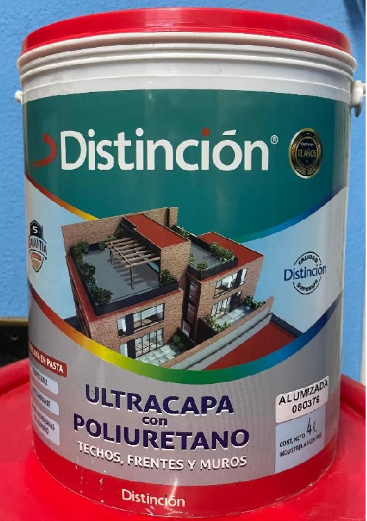 - 3- Techos con membranas de Aluminio: Se debe limpiar toda la superficie con escoba o cepillo. Luego aplicar ULTRA CAPA CON POLIURETANO EN PASTA DISTINCIÓN,previamente diluida con un 20% de agua, fijándose especialmente en cubrir todas las zonas rotas y también por debajo de la Membrana de Aluminio si estuviera despejada. Luego dejar secar 4 horas y aplicarla sobre la totalidad de la Membrana de Aluminio, sin dilución.