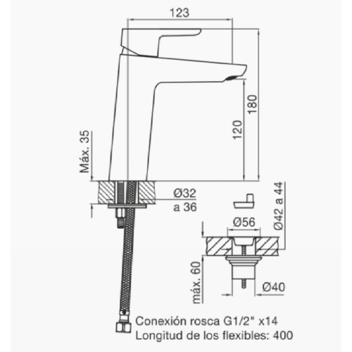 Monocomando para baño modelo Puelo