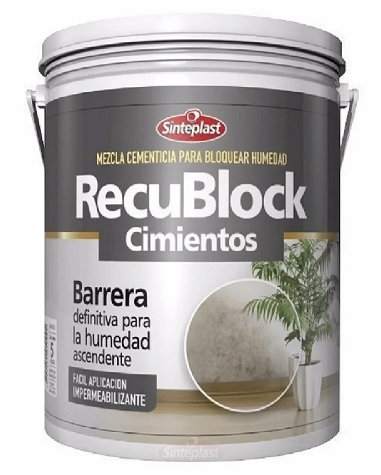 APLICACIÓN : Humedecer levemente el sustrato antes de aplicar el producto. Aplicar Recublock Cimientos con llana metálica en un espesor de 1mm, dejando una terminación lisa, de forma de lograr un acabamiento listo para pintar. El producto debe ser aplicado hasta una altura de 1,30m del piso.