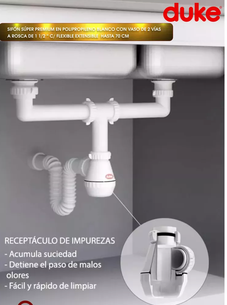 Sifón para cocina doble bacha