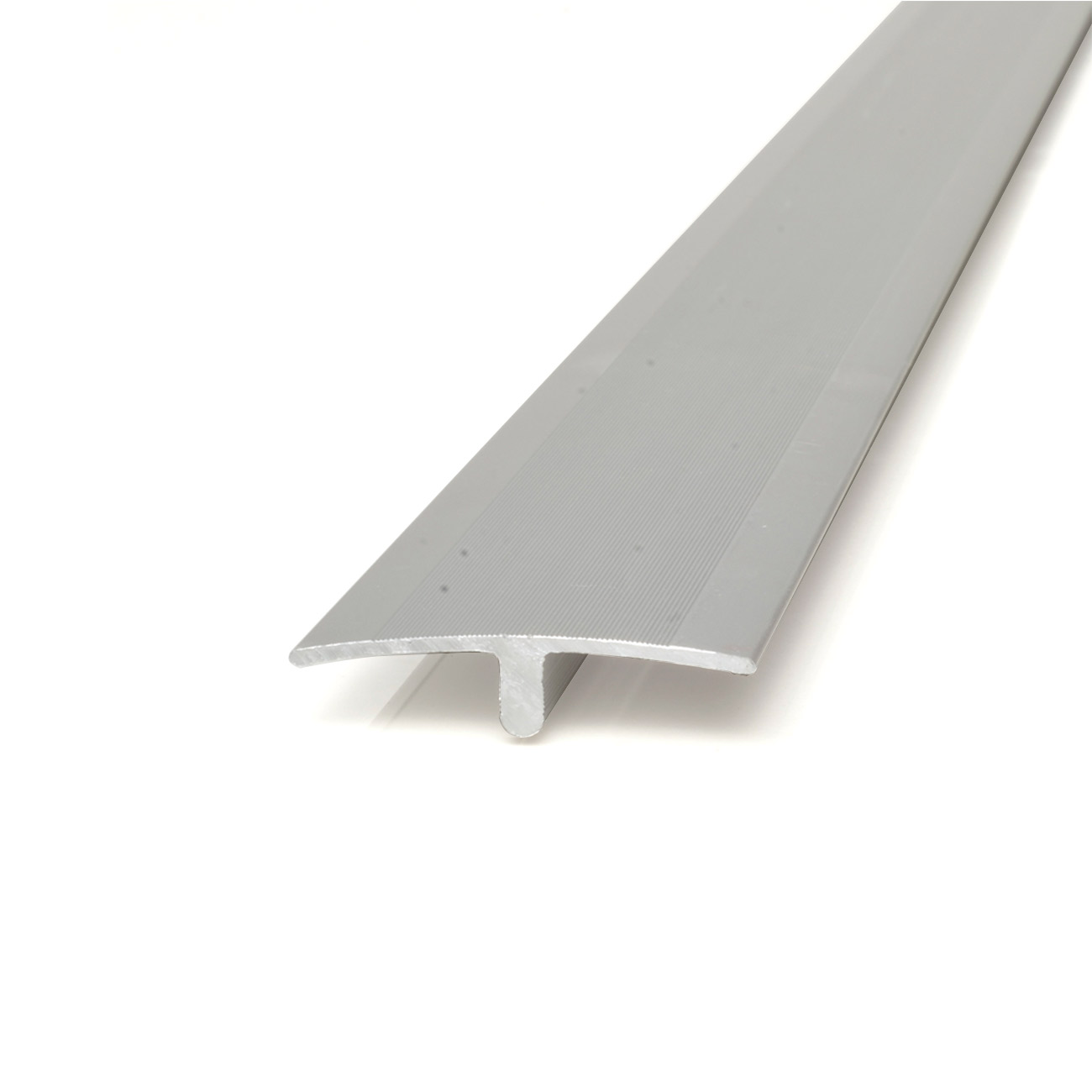 Perfil de aluminio para ocultar imperfecciones en la unión de pisos de diferentes revestimientos al mismo nivel.
